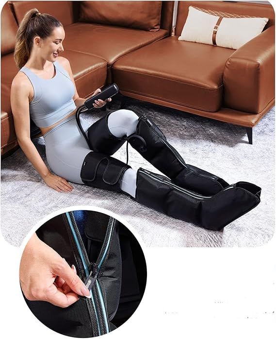 Essa massagem de pressão progressiva é semelhante à drenagem linfática mecânica, sendo ideal para uso após exercícios intensos ou em casos de cansaço crônico nas pernas.