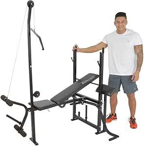 - Suporta diferentes exercícios: supino, desenvolvimento, tríceps e abdominais